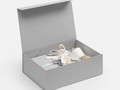 Подарочная коробка RealBig Fold изготовлена из переплетного картона, кашированного дизайнерской бумагой с крышкой на магните. Благодаря самосборной конструкции коробка легко и быстро собирается без дополнительных инструментов. Это идеальное сочетание эстетики и функциональности для упаковки ценных презентов и аксессуаров, где важны и практичность, и декоративность — для самого приятного впечатления от вручения.
