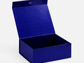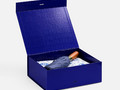Коробка из переплетного картона с лайнером, ламинированым полуглянцевой текстурной пленкой устойчив к царапинам. Крышка на двух магнитах дополнительно фиксируется репсовой лентой.Толщина картона 2 мм.