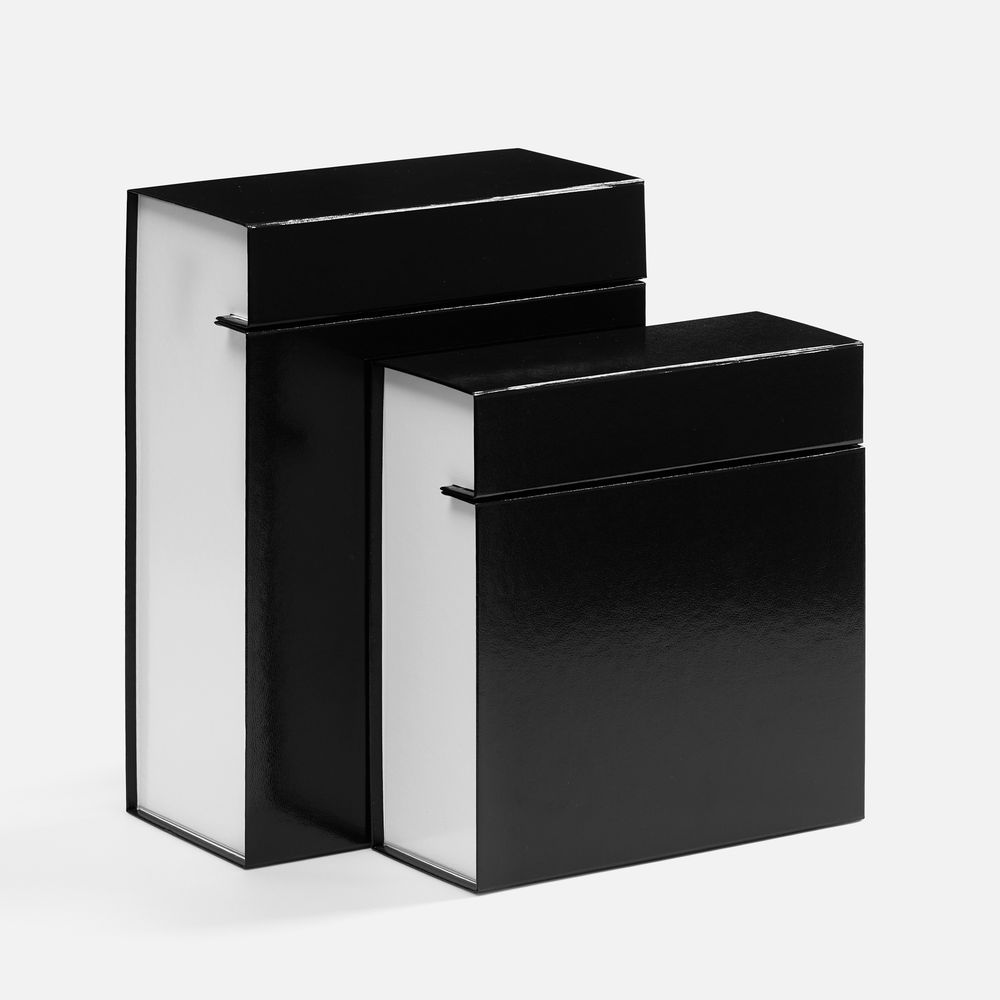 Плотная коробка из переплетного картона толщиной 2 мм с практичной конструкцией на двух створках. Складная система с уже нанесенным двусторонним скотчем позволяет быстро собрать коробку без дополнительных инструментов. Лайнер с полуглянцевым ламинированием устойчив к повреждениям и надолго сохраняет безупречный вид.