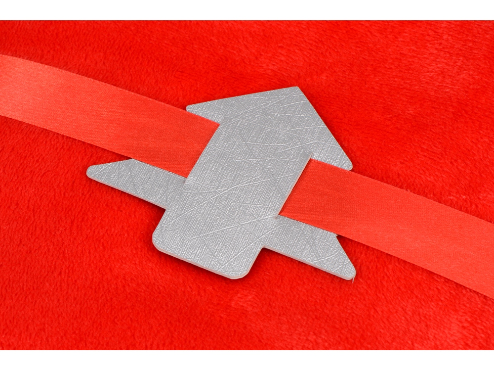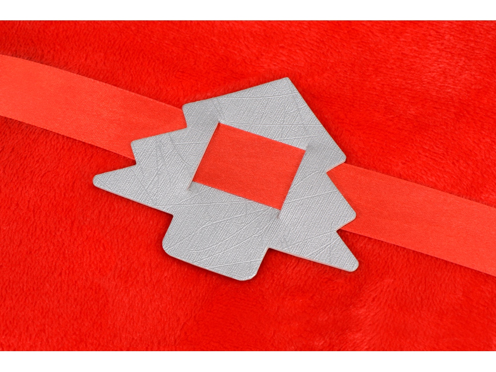Отличная идея для персонализации новогодних подарков и пледов. С помощью специальных прорезей (2,8 см) по бокам бирка надежно крепится с ленте, которой перевязан плед, и выглядит, как новогодняя игрушка. Тиснение (Блинт) на данный товар осуществляется бесплатно. Оплачивается только настройка оборудования в размере 8700 рублей на весь тираж.