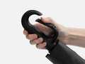 Преимущество обратного сложения заключается в том, что при закрытии внутренняя поверхность зонта остается снаружи, а мокрая сторона — внутри. За ручку-карабин удобно подвесить зонт на рюкзак или сумку.