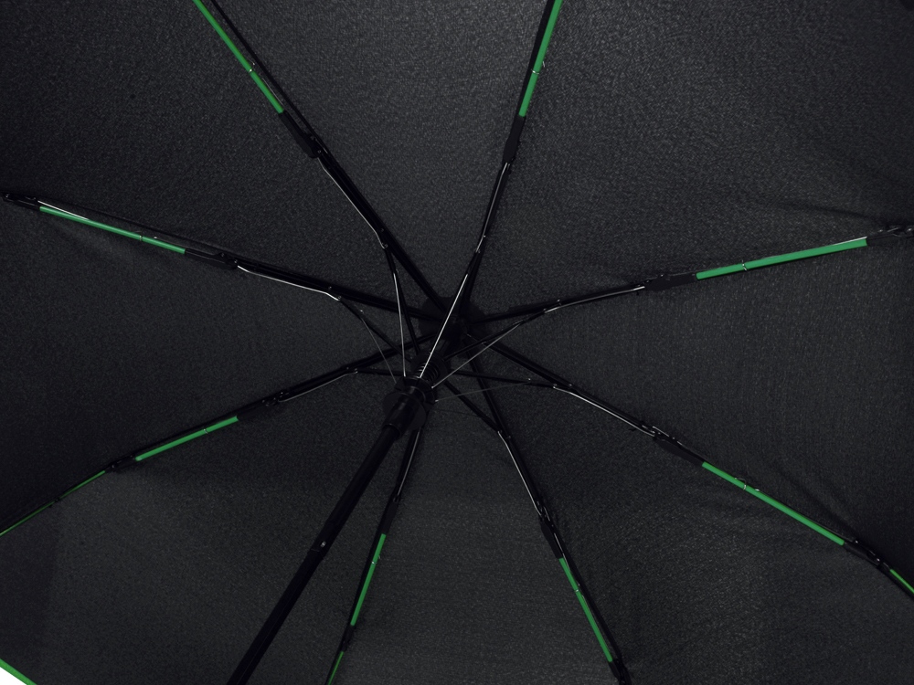 Зонт-полуавтомат складной Motley с цветными спицами, черный/зеленый