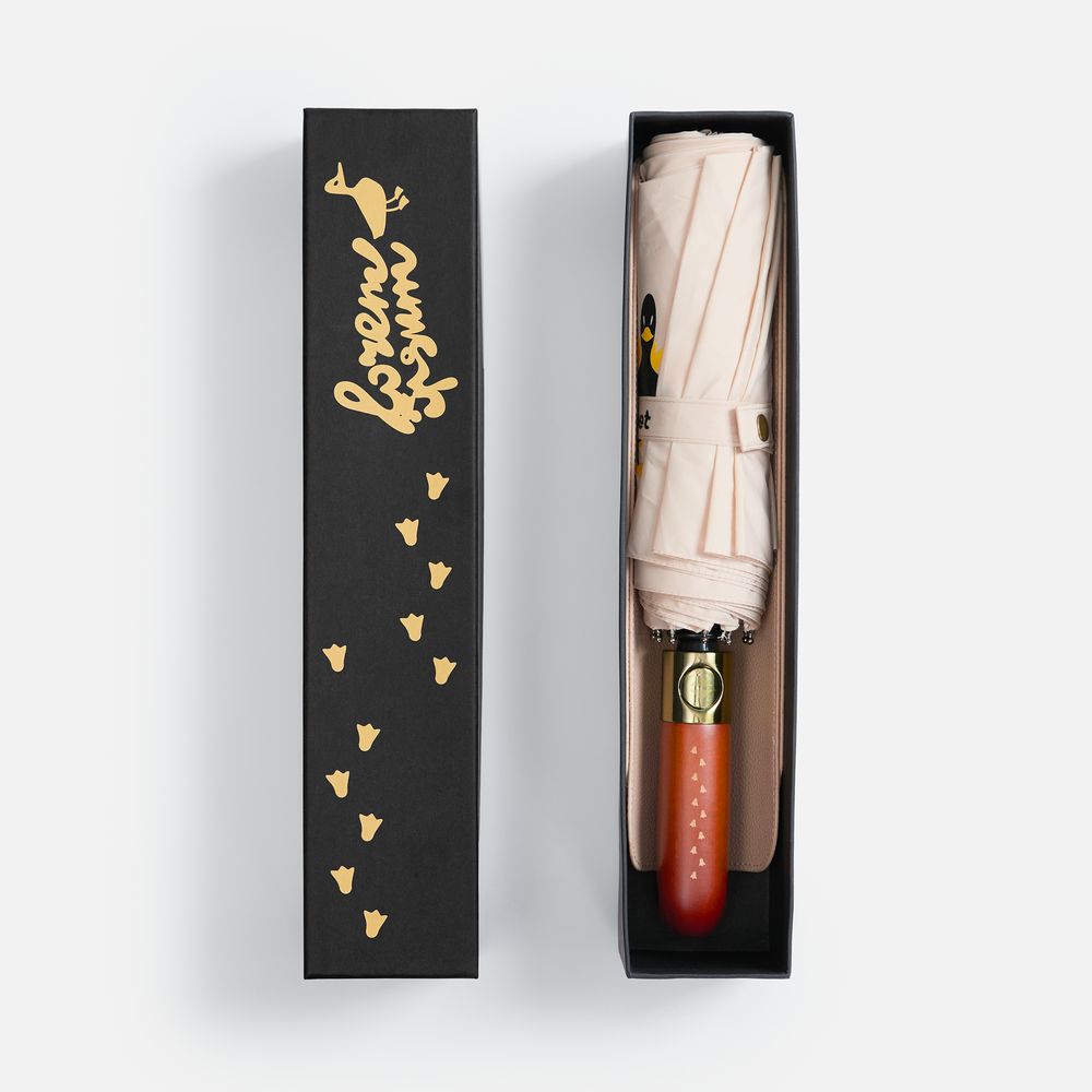 Автоматический механизм позволяет раскрыться за секунду. Плотная ткань купола обеспечивает высокую прочность и устойчивость к разрывам, при этом оставаясь легкой. А ручка из натурального дерева обеспечивает комфортный захват и добавляет зонту благородности.
