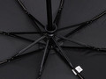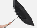 Зонт оснащен механизмом с пружиной и спицами из стекловолокна. Благодаря этому когда при экстремальных порывах ветра купол выгибается, механизм пружинит, не давая спицам погнуться или сломаться.