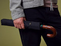 Идеальная модель для тех, кто не задается целью найти легкий и короткий складной зонт-«механику», а скорее, обрадуется старому доброму увесистому и основательному полуавтомату. У модели ветроустойчивая конструкция. Рукоять выполнена из массива дерева и благодаря натуральности материала невероятно комфортно ощущается в руке.