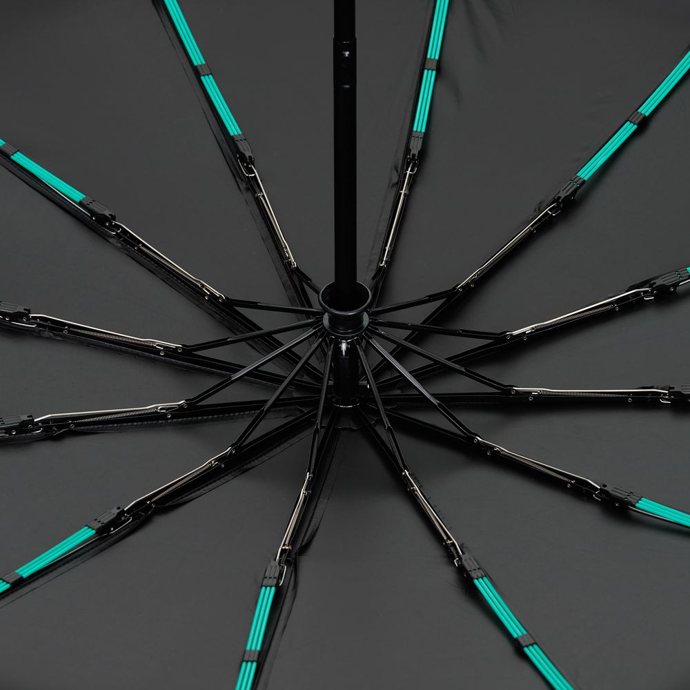 Зонт Ribstar отвечает абсолютной устойчивостью на любую непогоду. 12 усиленных тройных спиц — это не просто каркас, а целая инженерная система, которая противостоит шквальному ветру. УФ-покрытие на внутренней стороне купола позволяет использовать зонт не только во время дождя, но и под палящим солнцем.