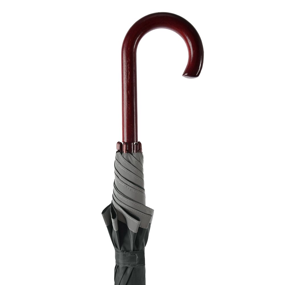 Зонт со светоотражающей полосой обеспечит дополнительной защитой в темное время суток, повышая видимость для водителей и пешеходов благодаря ярким отражающим элементам.