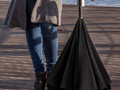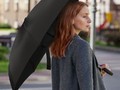 Это зонт-наоборот, зонт-наизнанку. Складываясь после дождя, он прячет мокрую поверхность в себя, а сухая остается снаружи. Для просушки его можно не только подвесить за ручку, как обычные зонты, но и поставить прямо на пол в полусложенном состоянии. Итог — мягкая щадящая просушка и минимум занятого мокрым зонтиком места.