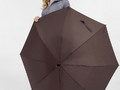 Элегантный зонт с большим куполом и деревянной J-образной ручкой.